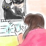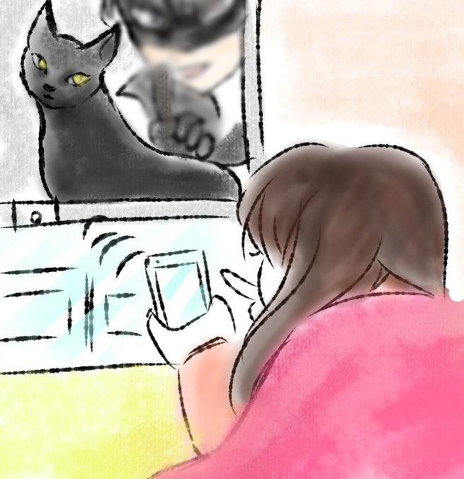 もうすぐ☂️止むかもね♪ (おぉ🐈⬛久しぶり( ˶'ᵕ'˶) ̖́-) #芸術同盟 #絵の世界 #イラスト