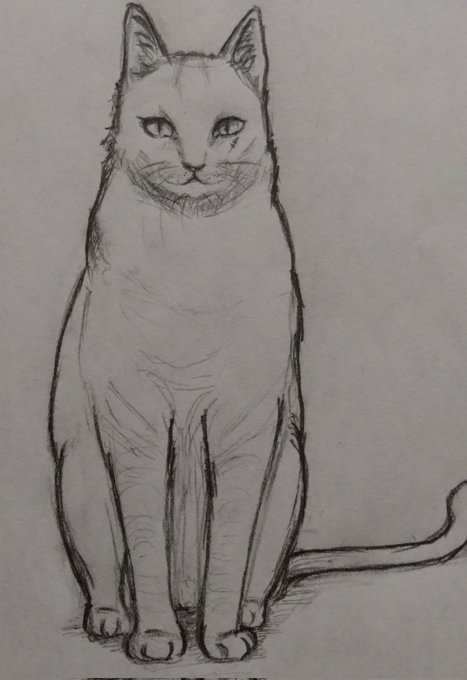 猫って座るとモコモコしているんですね꒰*˙꒳˙*꒱#イラスト