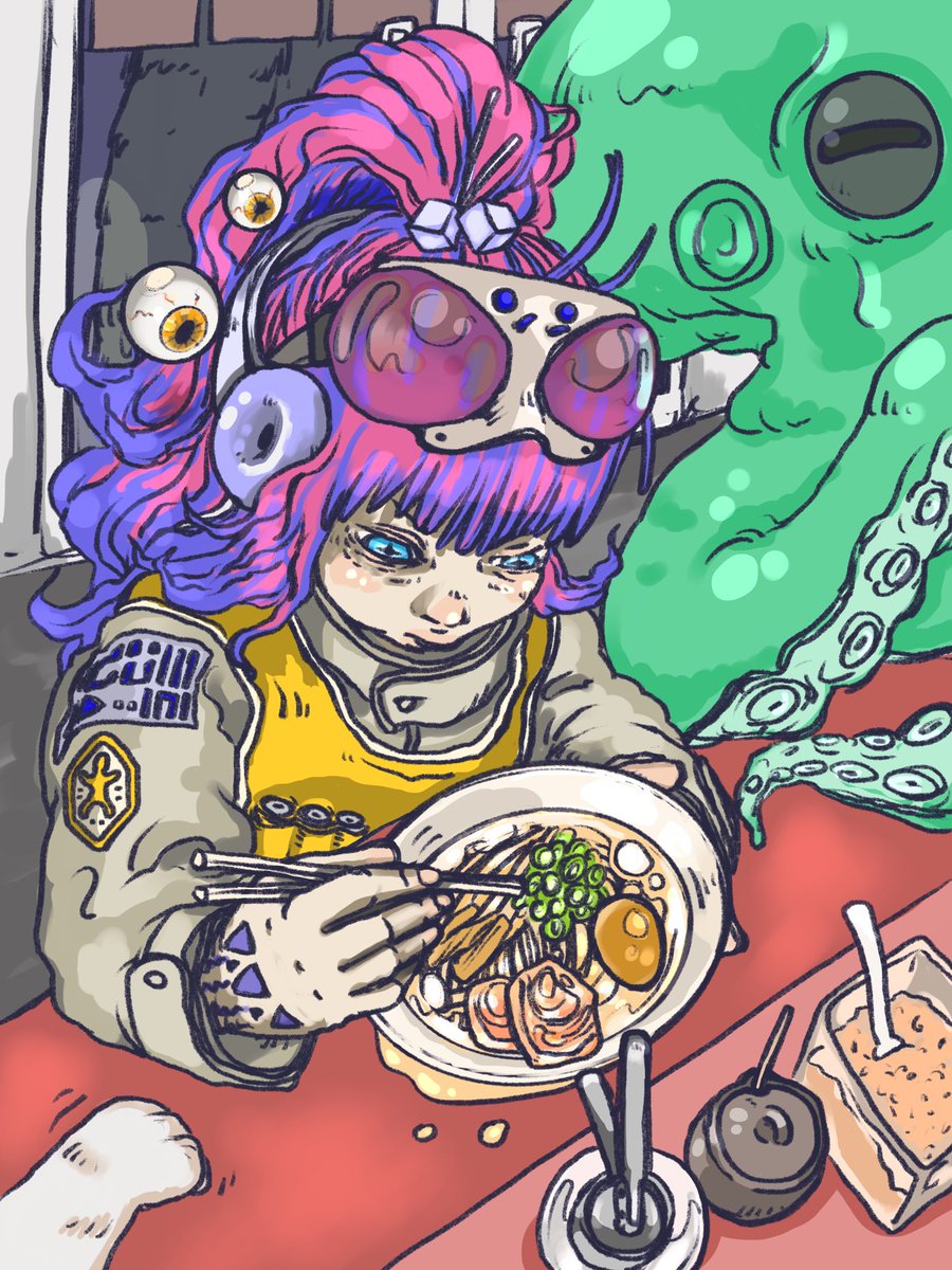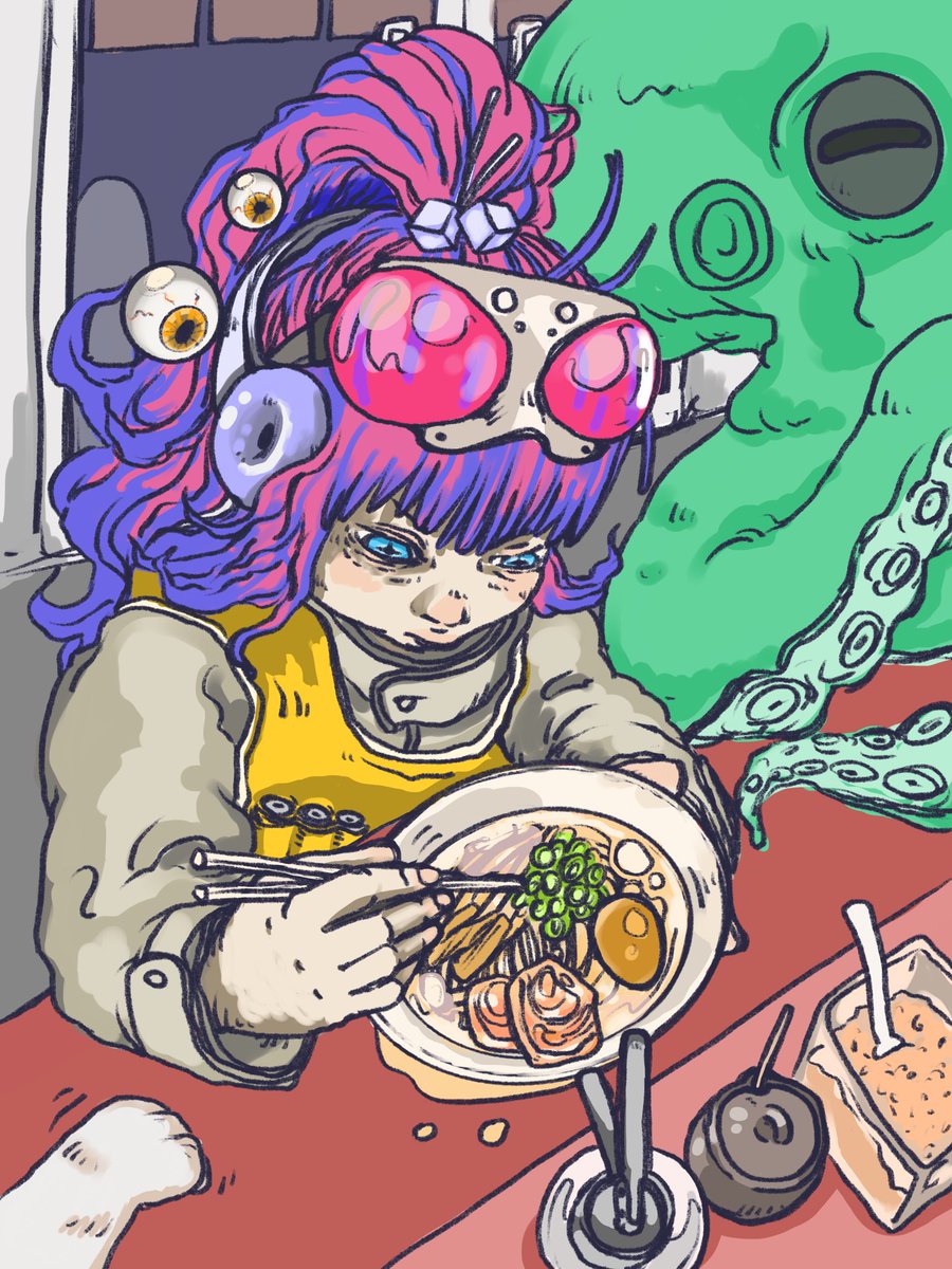 夜勤前のラーメン #illustraion #イラスト #お絵描き