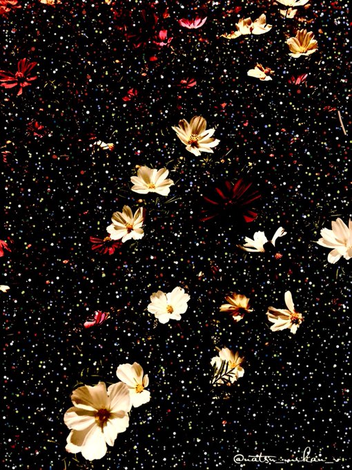 Christmassy🎄 夜撮影したお花の写真に(少し気が早いですが😉)クリスマスの夜空と、サンタクロースが届けてくれるカラフルなクリスマスギフトのリボンの色をイメージしながらドットを描きました🎁今年も素敵なクリスマスになるといいですね😊 今日も良い一日を🌺 #art #christmas #おは戦41103nm