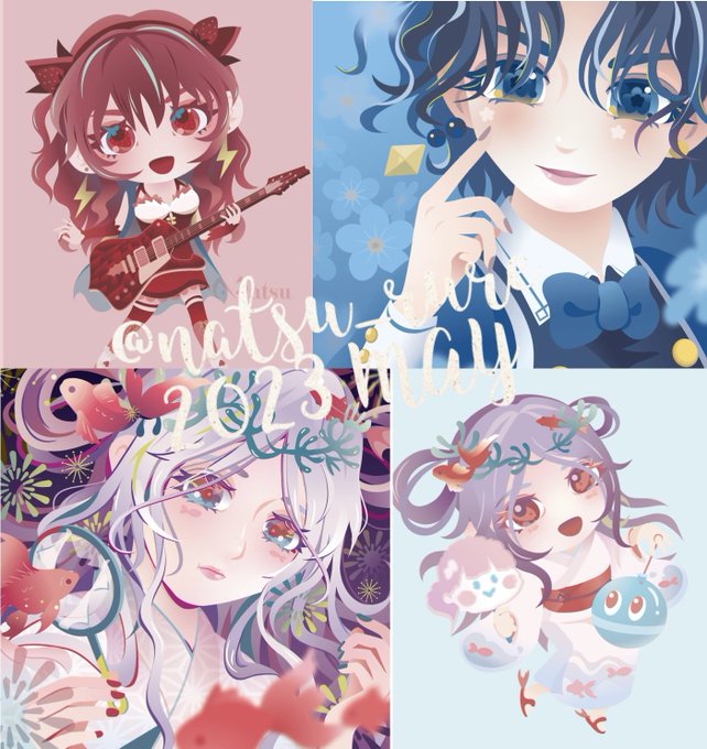 #今月描いた絵を晒そう こちらのタグ使って2ヶ月目! 月に1枚も描いてない時期もあったと思うと、今の状況は本当に嬉しいです☺️ ①SWEET ROCK GIRL 001(チビ) ②HOOKY!ふみこちゃんファンアート ③ NFT縁日 LINE NFT集合絵用チビ ④ NFT縁日 展示用 6月も楽しく描いていきます!