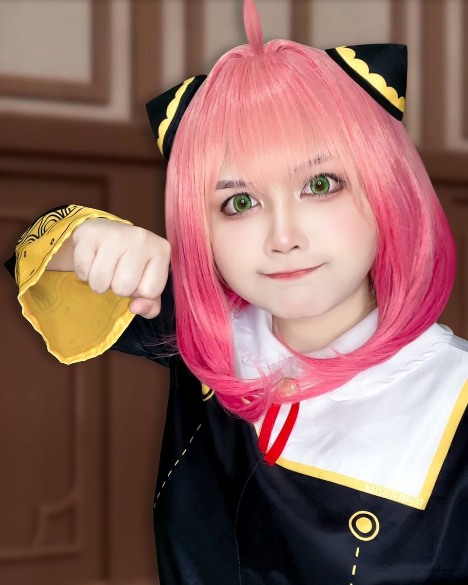 𓁹‿𓁹 ʰᵉʰ⋅ Character: Anya Forger Origin: SpyxFamily #AnyaForger #SPYxFamily #cosplay (I don’t have Anya’s plushie so I used Barbatos instead)