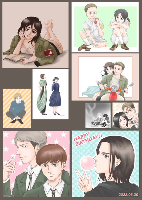 #モブリット・バーナー生誕祭2022 #モブリット生誕祭2022 2枚目でお祝い! モブリット君、お誕生日おめでとう🎊 いろいろ描いてみましたー😊 ファッション誌のグラビア風のイメージです✨ 皆さま、良い4/24を❣️
