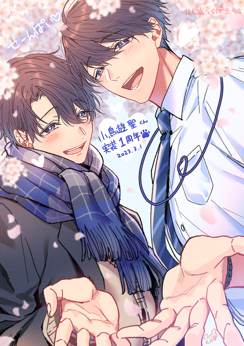 【お仕事告知】 小鳥遊くんの新規スチルを担当しました!学ラン姿を描くのは2度目ですが意外と着こなしているなぁと思いながら楽しく描かせていただきました!イベント楽しんでいただけましたら幸いです🐶🏫💙 スチルの一部となります/掲載許可済み twitter.com/plusmate00/sta…