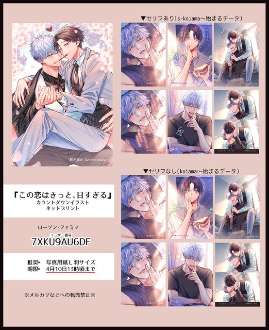 恋甘カウントダウンイラストをネットプリントに登録しました🥳よかったらプリントしてやってください🤎写真用紙L判推奨です! ローソン・ファミマ ユーザー番号【7XKU9AU6DF】 4月10日13時頃までです! #この恋はきっと甘すぎる