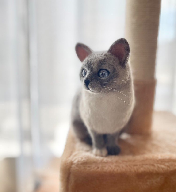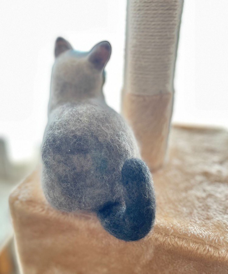 MIX猫のミケちゃん🐈⬛ 初めてリアル目指した猫ちゃんです🐱 オーダー主さんのおうちで キャットタワーでステキなお写真撮ってくれました🥰✨ ご家族で喜んでくれました💖 猫制作経験があまりなく難しかったですが、なんとかミケちゃんになりました✨ #猫 #うちの子ぬいぐるみ #羊毛フェルト