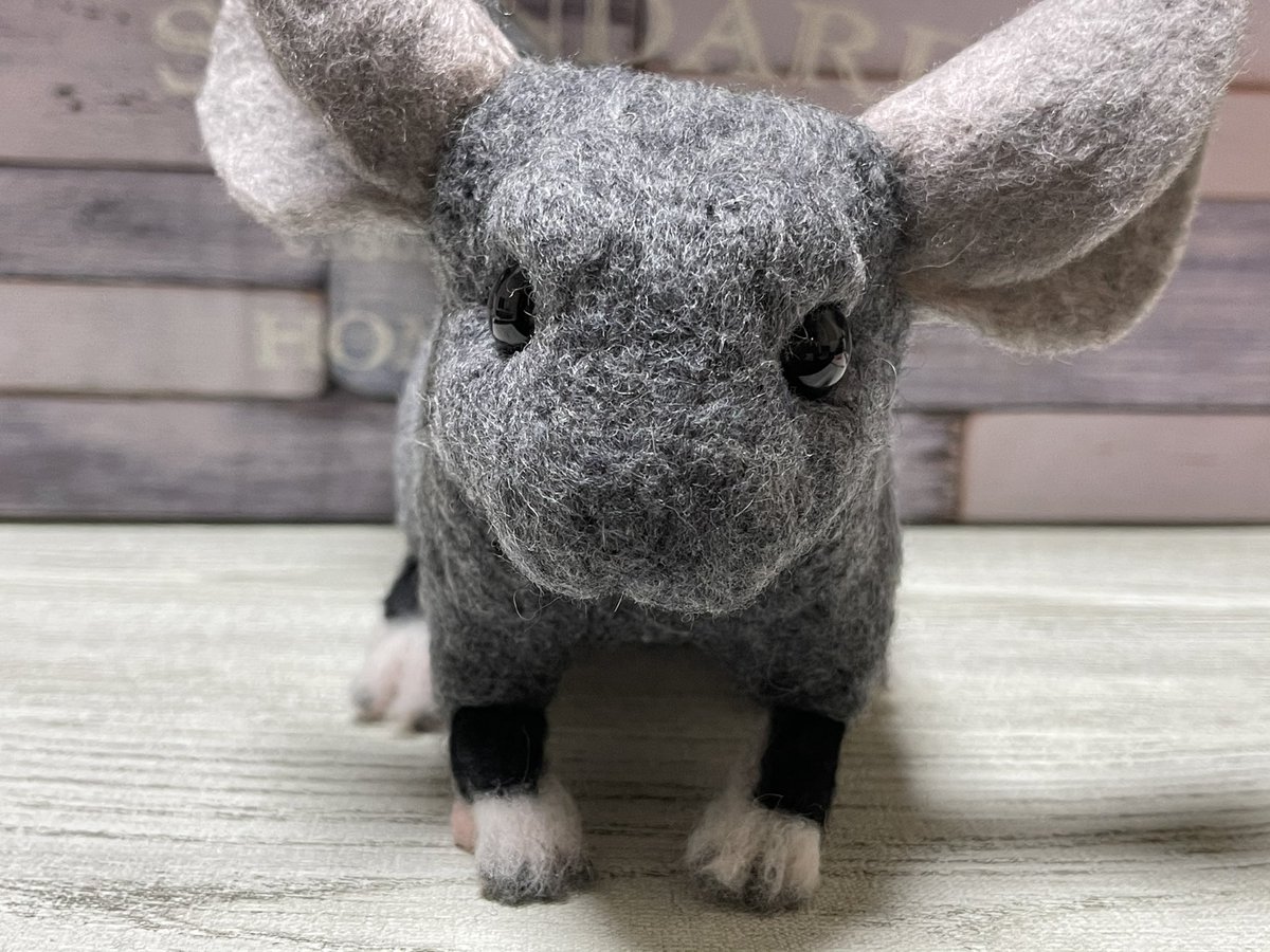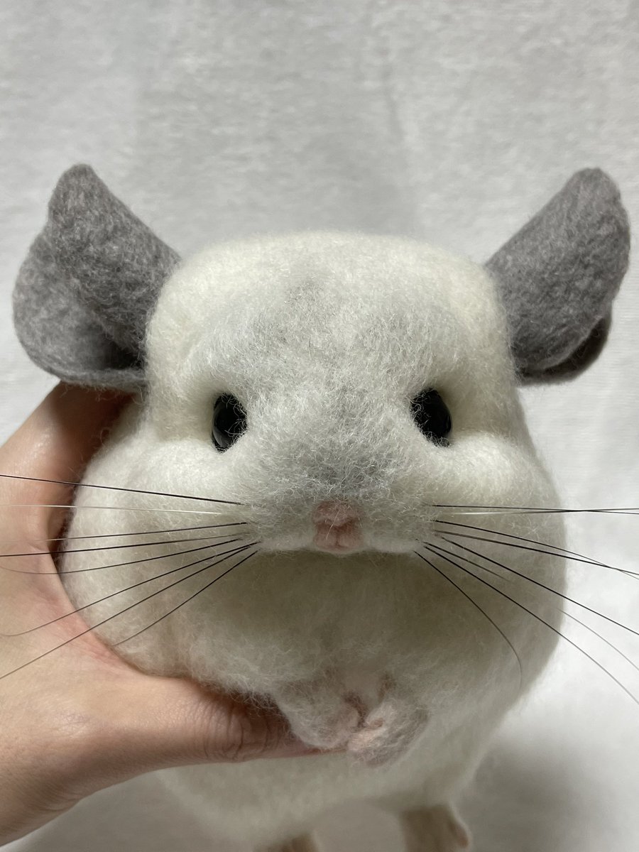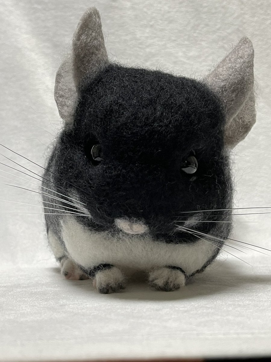 あざと可愛い黒豆ちゃん完成❤️ 写真1枚から作って スムーズに1発OK💖😆 今回からお髭用テグス長いの入手できて リアルに見えるように色も塗ってます❣️ 進化✨いい感じ✨ #チンチラ #うちの子ぬいぐるみ #羊毛フェルト