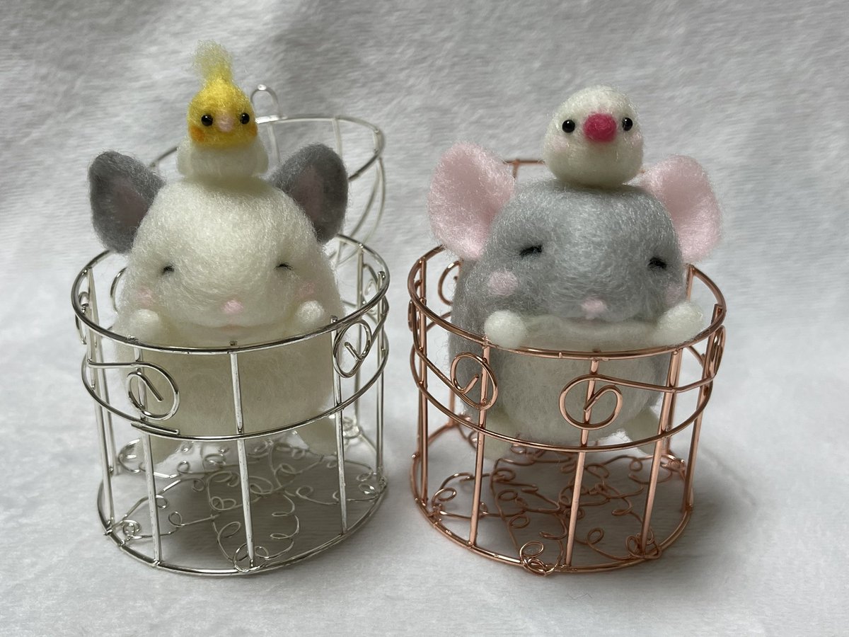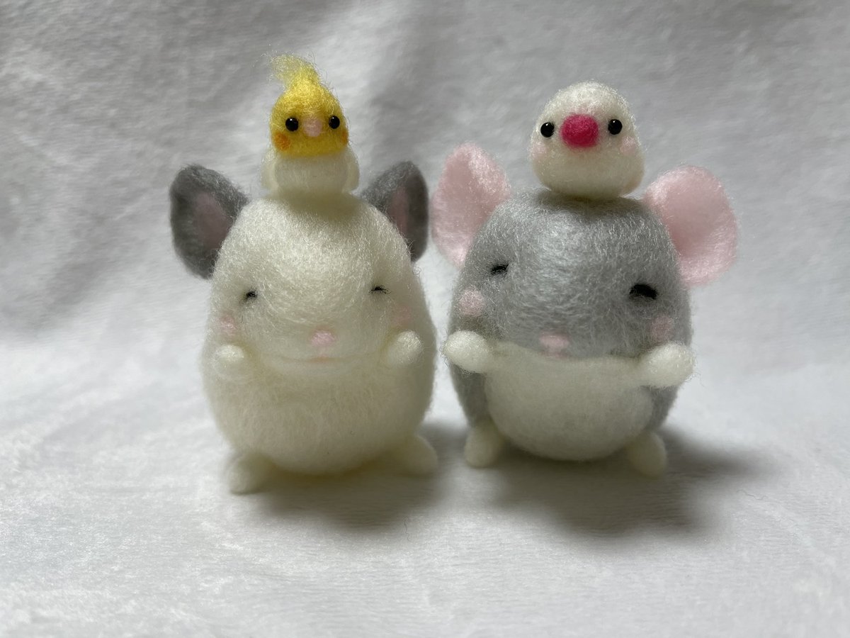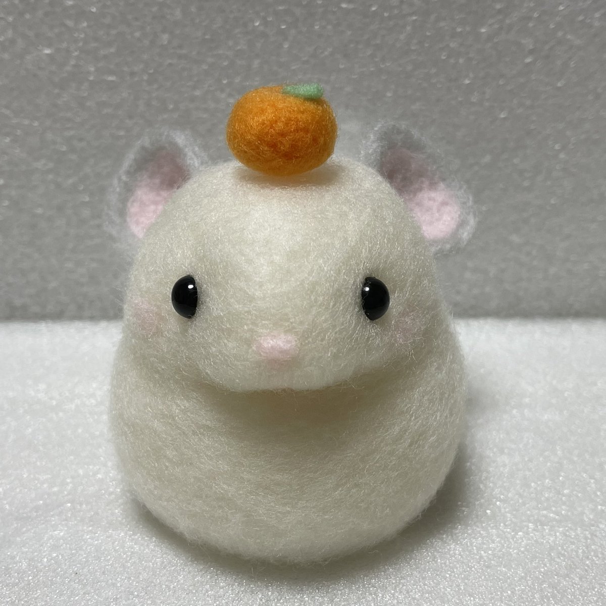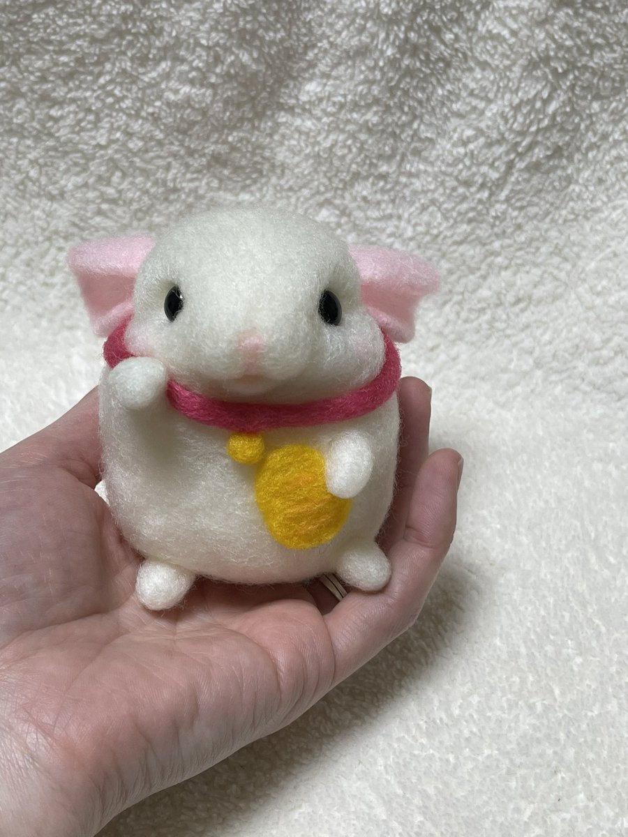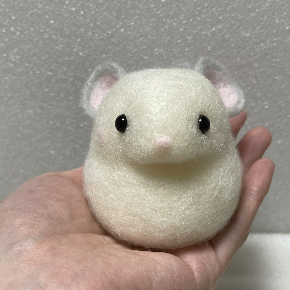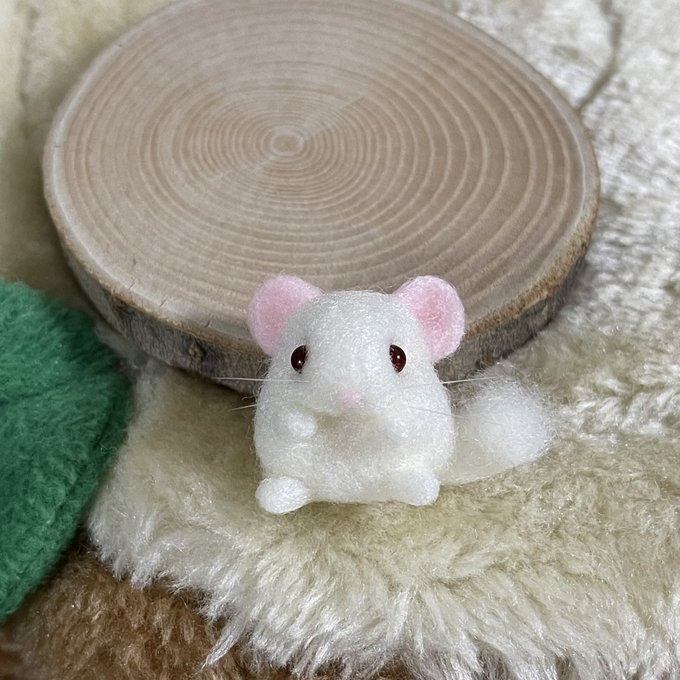 むぎちゃんマスコット❤️ お花の上に乗せる用でミニサイズ✨ ブドウ目は、サイズがないので 旦那のガンプラ用の塗料借りて 黒目に赤塗ってみました❣️ いい感じ✨👀 #チンチラ #オーダーマスコット #羊毛フェルト