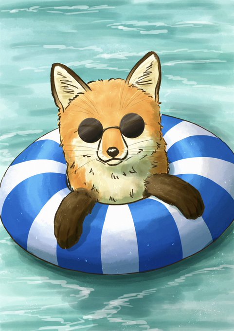 海に来たキツネ🦊😎 #イラスト