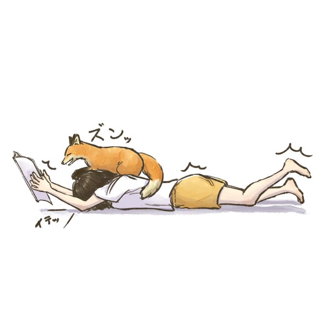 寝転がって本読んでるとこうなります🦊 #イラスト