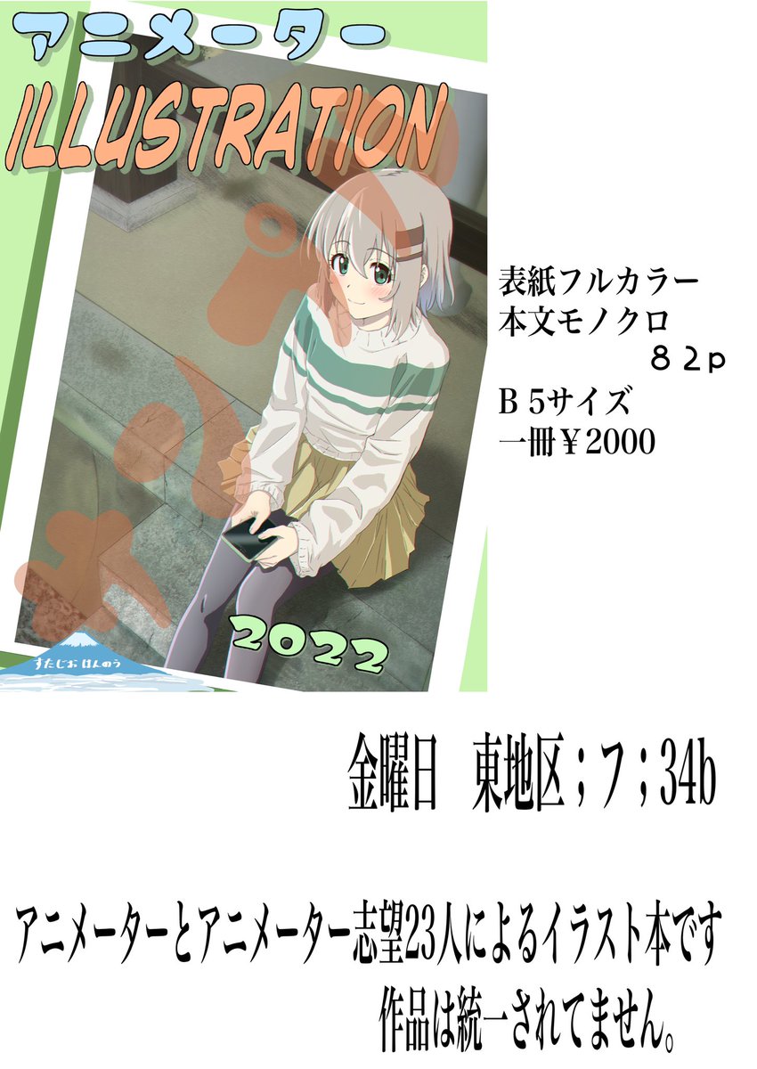あなたのサークル「スタジオはんのう」は、コミックマーケット101で「金曜日東地区 "フ " 34b」に配置されました!コミケWebカタログにてサークル情報ページ公開中です! webcatalog.circle.ms/Perma/Circle/1… #C101WebCatalog 改めてアニメーター23人の落書き本です〜 ※今回は作品は統一されてません