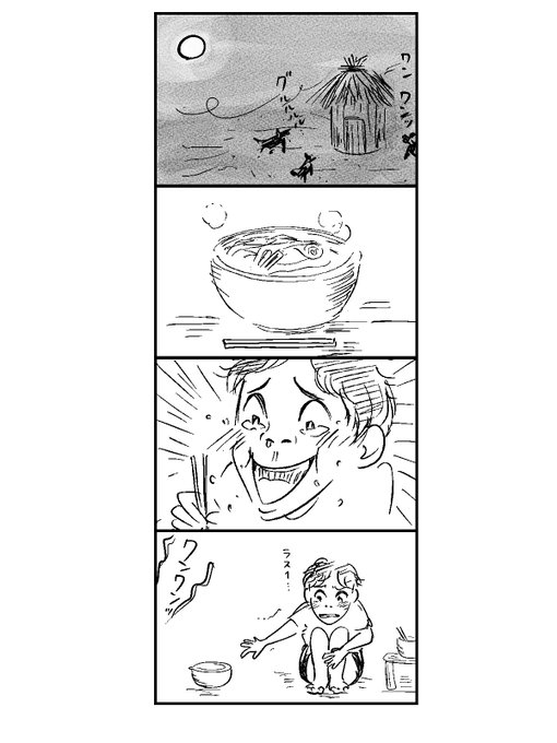 「4コマ目は『おかわり』の感情を描こう!」 っていう指示を聞く前にフライングして描いたバージョン。 #コルクラボマンガ専科