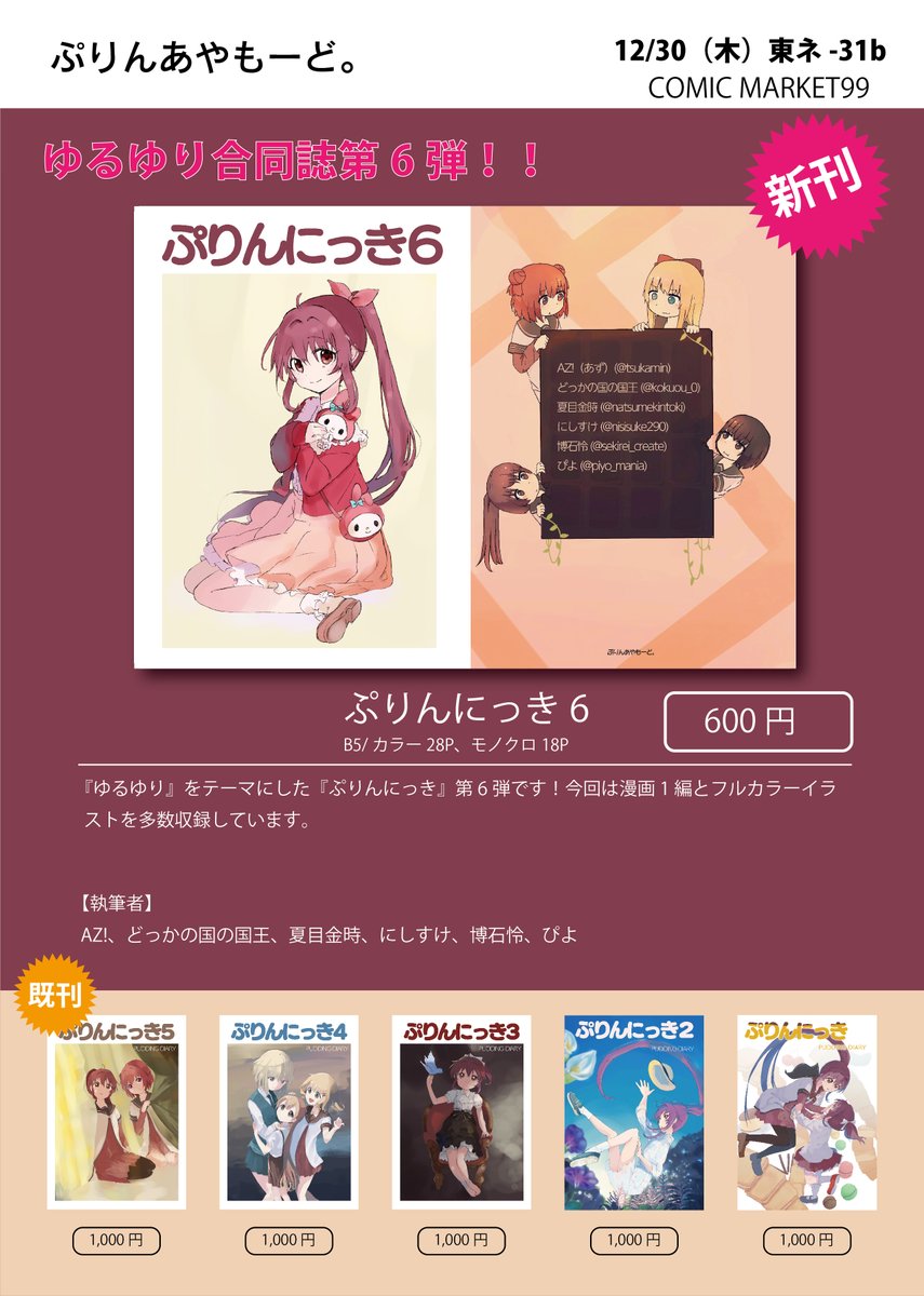 【告知】冬コミで『ぷりんにっき6』頒布します!12/30 東ネ31bでお待ちしてます。とらのあなでも予約受付中です! ecs.toranoana.jp/tora/ec/item/0… #C99A