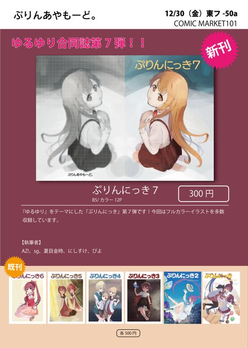 【告知】冬コミで『ぷりんにっき7』頒布します!12/30 東フ50aでお待ちしてます。後日とらのあなでも委託予定です! #C101