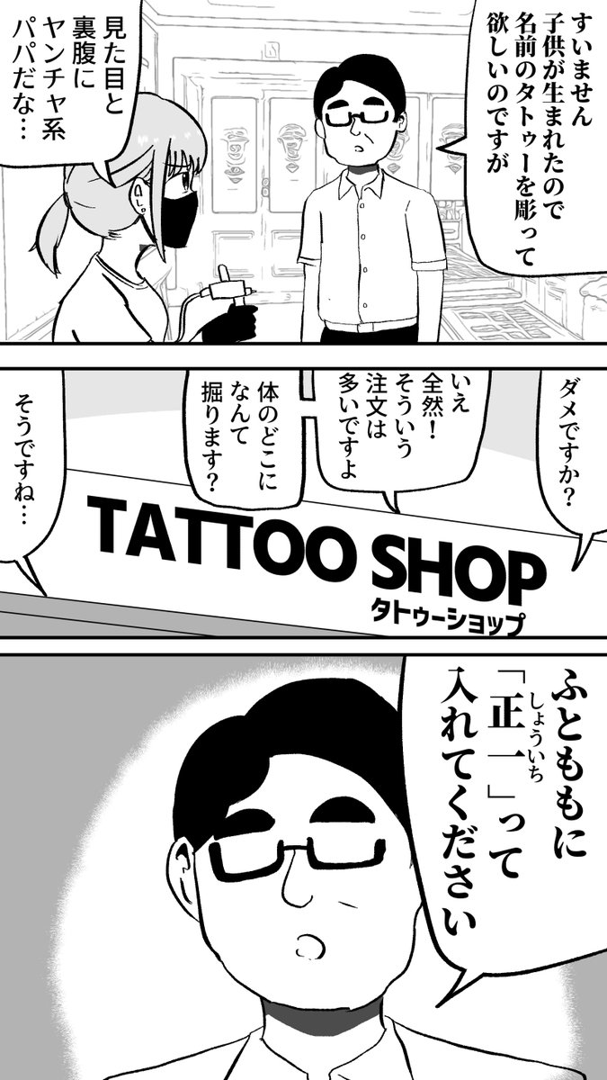 ふとももに子供の名前のタトゥーを入れるお父さん:FANBOX morinatsume.fanbox.cc/posts/6477616?…