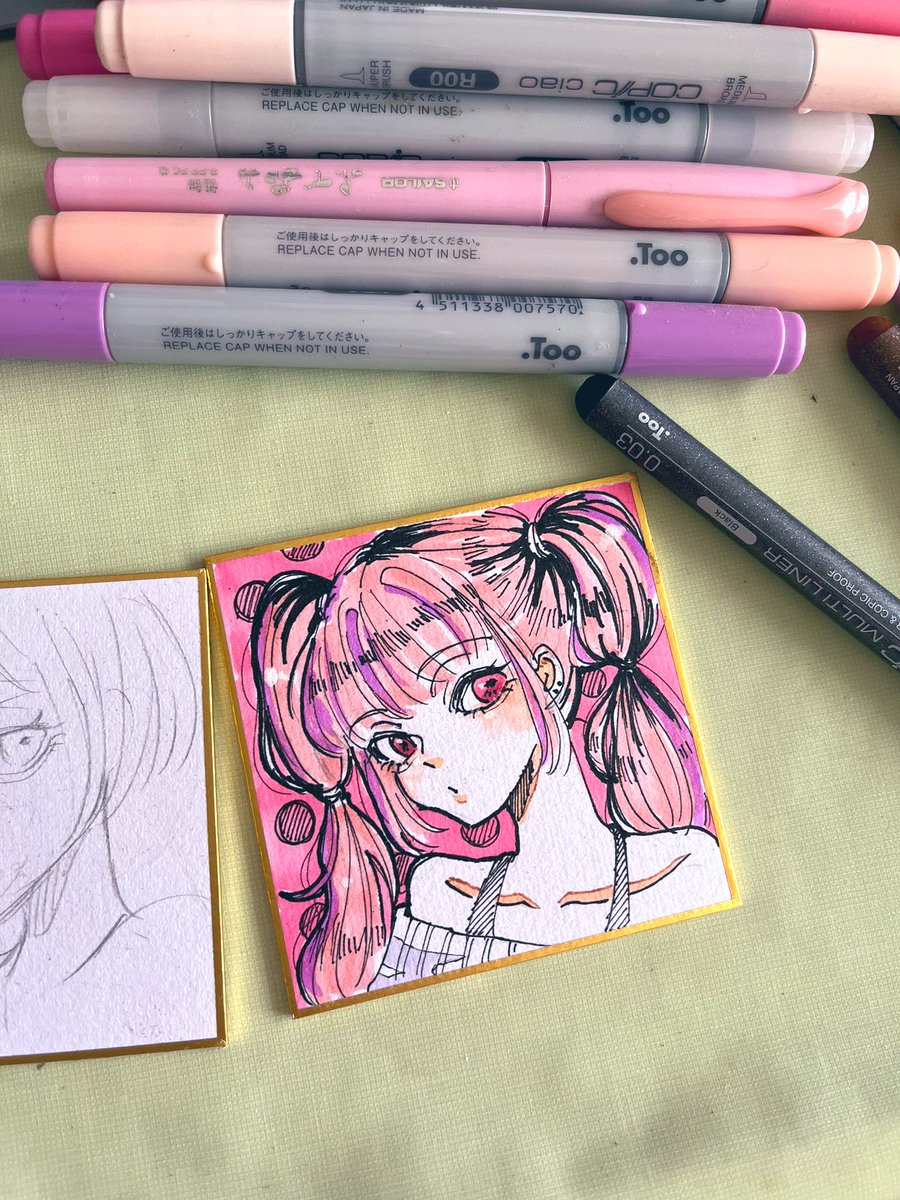豆色紙が沢山あったから描いてみたけど色紙むずい…!紙質むずい!コピックむずい!アナログむずい!! 普段のらしさが全然出せない 色紙上手い人って本当に絵が上手いんだと思うっ。 twitter.com/i/web/status/1…