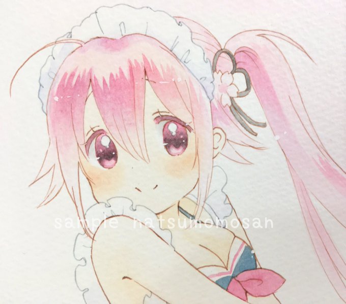 6 45 『プールの授業の後に』 少し髪の毛がまだ濡れているかすみ氏 #ヤフオク #出品中 #透明水彩 22/08/06 07:05