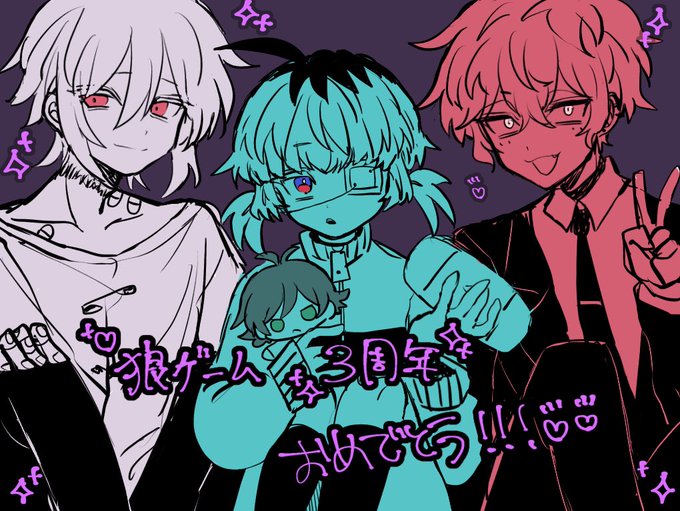 狼ゲーム3周年おめでとう😆🎉💓 これからも頑張ってください❣️ #わさびファンアート