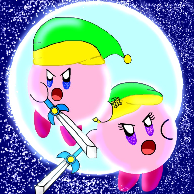 なつみんとカービィのイラスト2個 描いてみました😊 ソードで戦うナッツとカービィ⚔💥と、ちょう🦋の魔法で変身するナッツカービィ描いてみたよ😘 #カービィ #イラスト