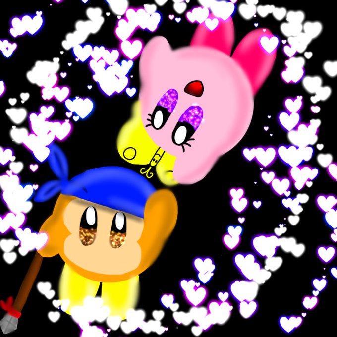 バンダナワドルディとナッツカービィとふたりのハート🧡💙💛🦋💗 #バンダナワドルディナッツカービィ #イラスト