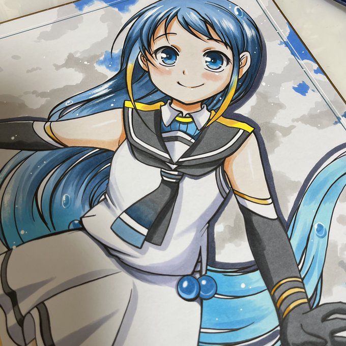 青系のイラストが描きたくなった時に描いた五月雨さん、いやはや…かわいいね。 ちなみに私は菊月、皐月と月の付く系が好きなのであります(笑)あとは舞風さんが大好き🎵