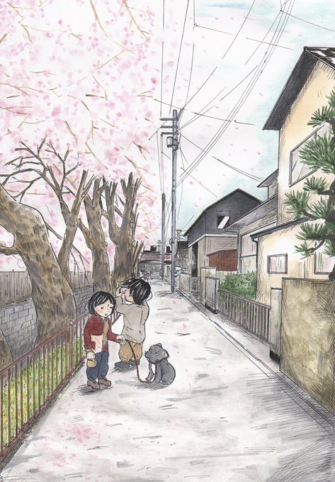 1 7 仙台市若林区 桜満開です #イラスト #アナログイラスト #コピック #水彩色鉛筆 #桜 23/04/05 21:24