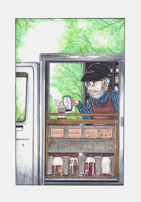 緑の季節とコーヒーおじさん #イラスト #アナログイラスト #コピック
