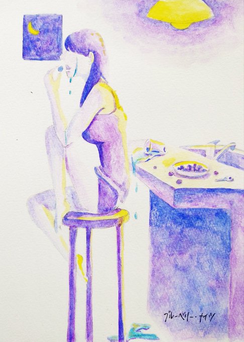 ブルーベリー・ナイツ 運命の誰か、私を潰して食べて 誰でもいいよ、私をすくって食べて #マカロニえんぴつ #イラスト好きな人と繋がりたい #絵描きさんと繋がりたい #アナログイラスト #春の創作クラスターフォロー祭り #芸術の輪