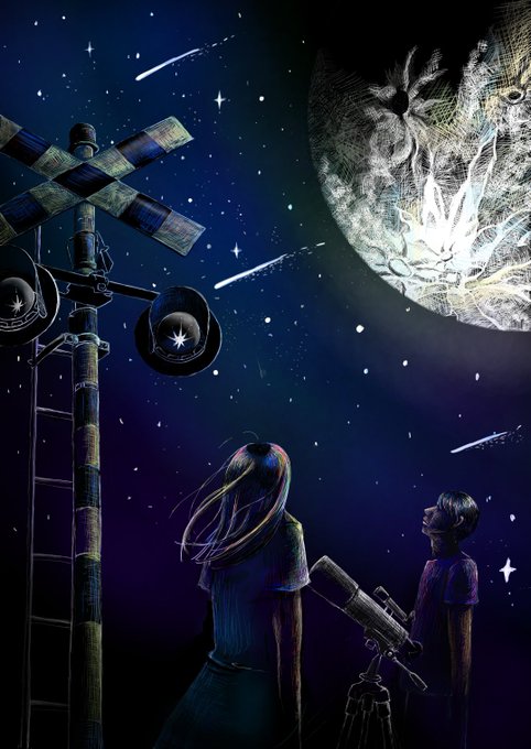 天体観測 あの日、見えないものを見ようとしてた君と、 今日も、見えてるものを見落とした私は、 望遠鏡越しに今。 #BUMPOFCHICKEN #天体観測 #音楽好きな人と繋がりたい #秋の創作クラスタフォロー祭 #イラスト好きな人と繋がりたい