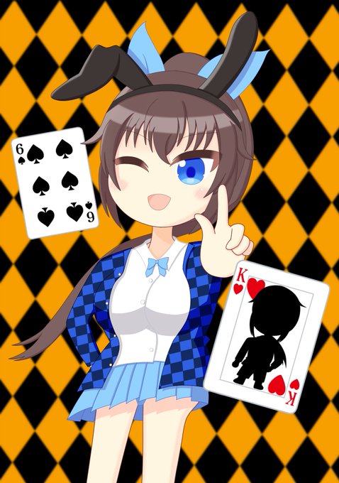 #バニーの日 色谷あすかさん(@sikitani_asuka )の子「涼糸未来ちゃん」を描きました! バニーの日に合わせてうさ耳をつけたり、トランプカードが似合うような柄の服を着せてみました!トランプカードは未来ちゃんの誕生日に合わせました!Kの柄にいる男の子は……
