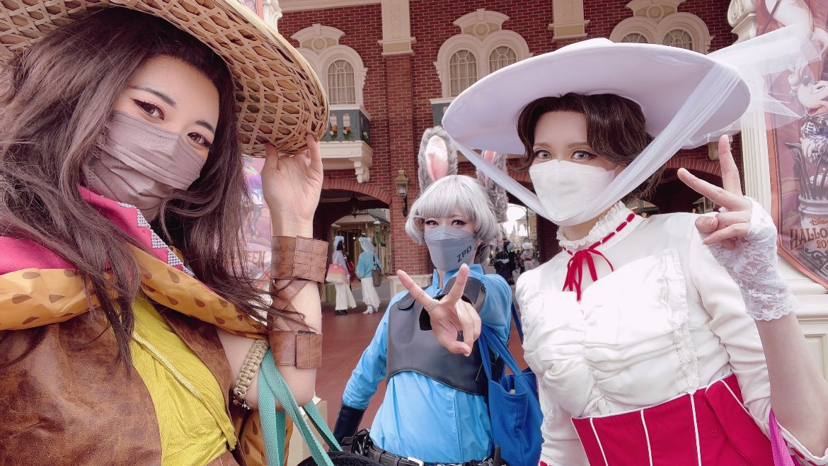 #Dハロ仮装 #Dハロ仮装2021 昨日やったラーヤ! マスクしてるのあってわかりづらかったかもだけど、何人か友達には見つけてもらえたし、とっても楽しかった💓 ご一緒してくれたさとこたんえりちに感謝💓 ツイステのエーデュースされてるめっちゃカッコいい2人に挟んで貰って写真撮ったの幸せでした←