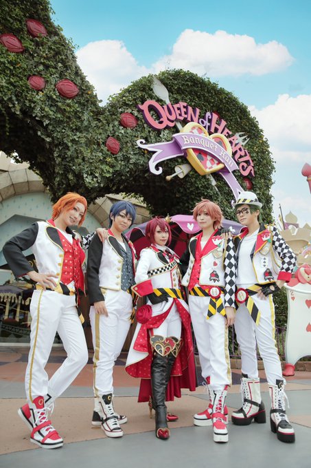 twst / HEARTSLABYUL 念願の💓クイーンオブハートのバンケットホール前で写真が撮れました🙌 これを撮るべく開園前から待機したよ😏 (寮長とデュースは4時起き✨他のみんなも4時半起き!頑張ったね🤣) #Dハロ仮装 #Dハロ仮装2022