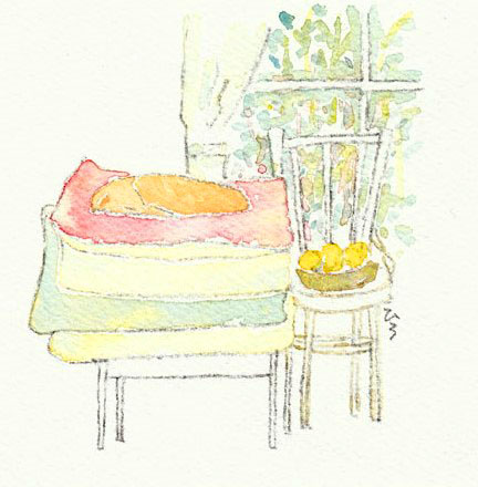 眠る猫。 8/2~7,大暑(たいしょ)大雨時行(たいうときどきにふる)夕立や台風などの夏の雨が降る頃です。江戸時代の猫もお鍋やお盆の中で寝るのが好きだったんですね。この句の光景が浮かびます。塗盆に猫の寝にけり夏座敷・一茶。 #24節気72候 #猫の絵
