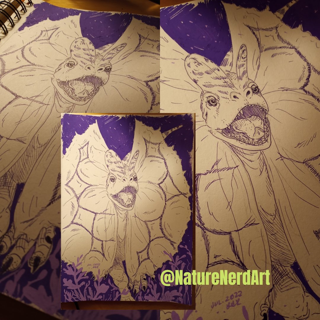 A sloppy 1.5 hr #JurassicPark style Dilo. I have monthly art challenges on my discord and this month's is draw your fav creature from Jurassic Park franchise. If you would like to take on monthly challenges come take a peak. discord.gg/KbtqJaxQ #dino #dilophosaurus #paleoart
