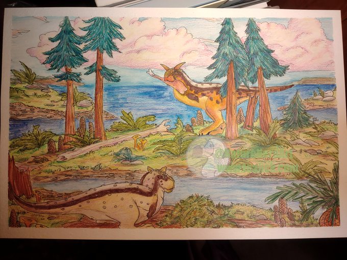 I think this is done as it is gonna get. I feel like if I fuss around with it much more, I am going to ruin it. This is a bigger piece - so not the best quality image - I do apologize. #Arteza #carnotaurus #art #paleoart #paleontology #nature
