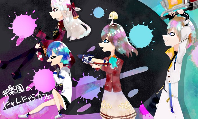 #楽園のにゃんにゃらカフェWIN ! 背景迷っちゃったからどっちも載せちゃう 急遽だったからアキくん妖精さんにしちゃった、ごめんね……; #奈羅ート #ニシゾノート #hanamaki_art #アキくんちゃんアート #ふうらーと
