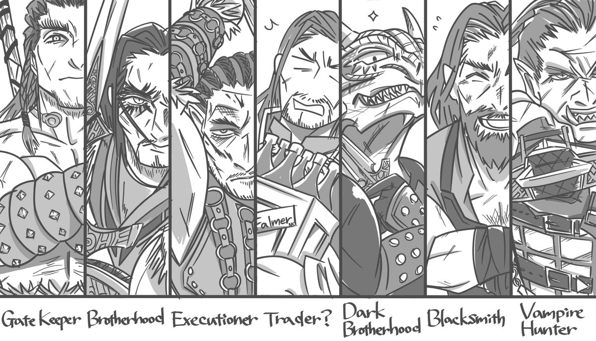 たまに悪い方に限界突破する男、シセロ。仲間も付き合いが長くなると察しがはやい。 #skyrim #TES・Fo版セリフでワンドロ 第31回「もうそろそろ限界だ」 遅ればせながらワンドロハーフアニバーサリーおめでとうございます!いつも楽しく描かせて頂き感謝です🙏🥳