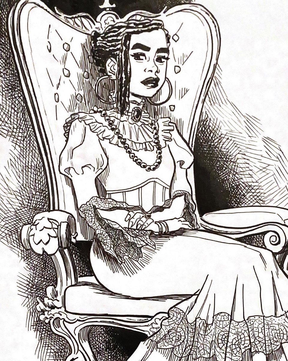 Esther art, traditionally for the first time! I am very happy how it turns out 🖤 #nautilebleu #artwork #traditional #sketch #doodle #comics #artoftheday #victorianaesthetic #blackandwhite #bw #darkaesthetic #sombrebeings #darktales