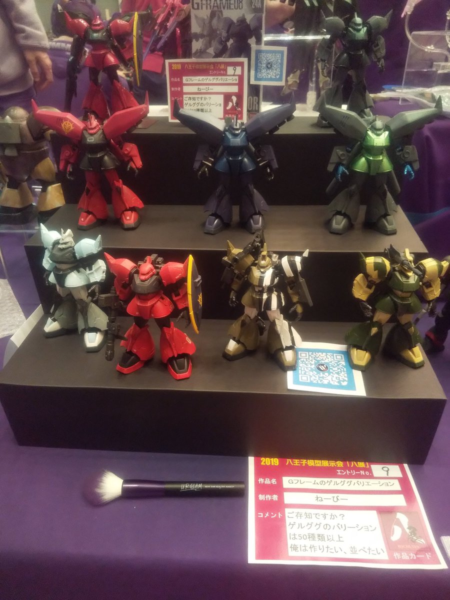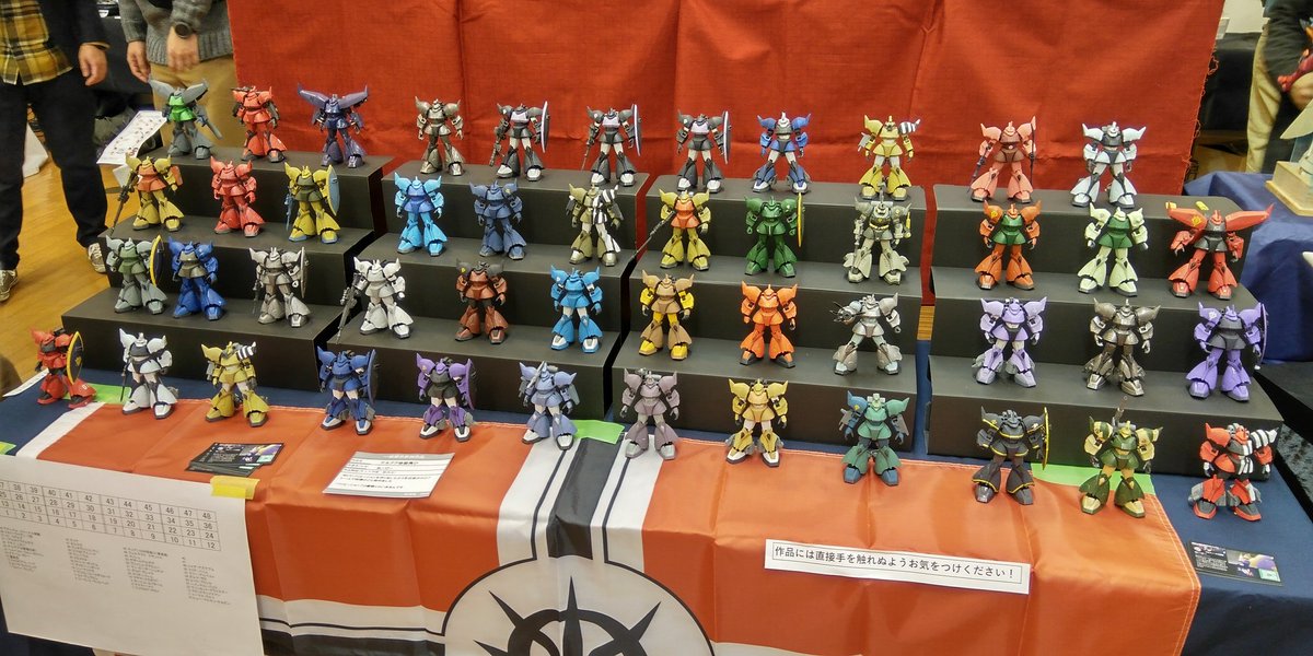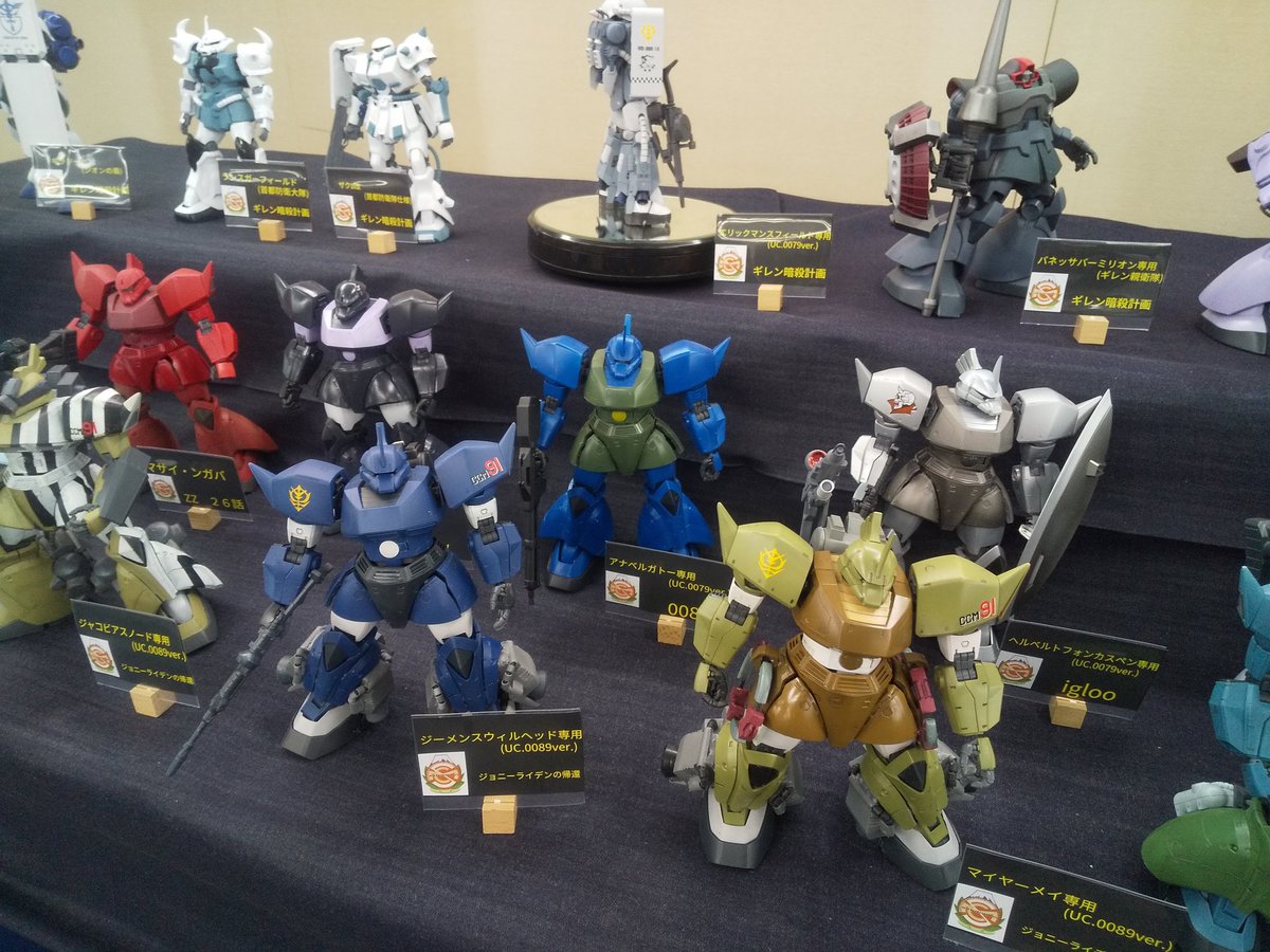 #Twitter模型祭 関東近県の展示会でゲルググを卓に並べてます 細かいディテールとかそんなのは気にしないでパッと見が形になってればいいかなレベルの実力です この一年はゲルググ以外の作成を楽しみました MGでゲルググマリーネ完成させました #年の瀬に渾身の模型晒すのでフォローしてください