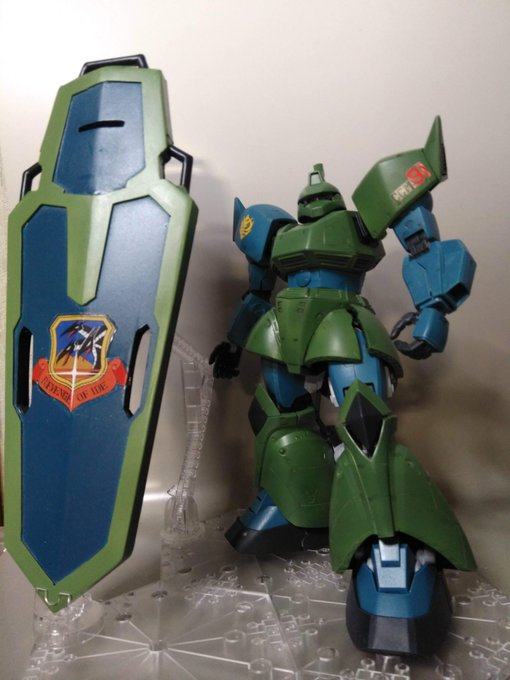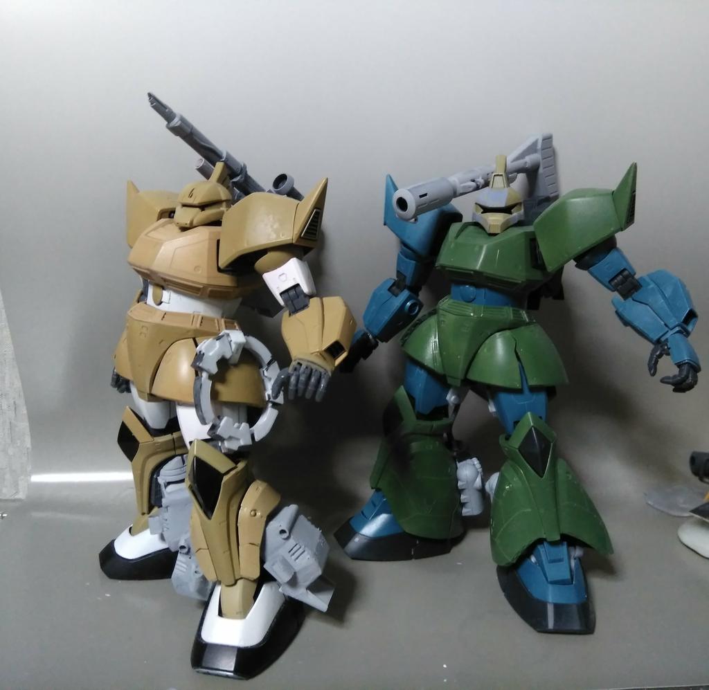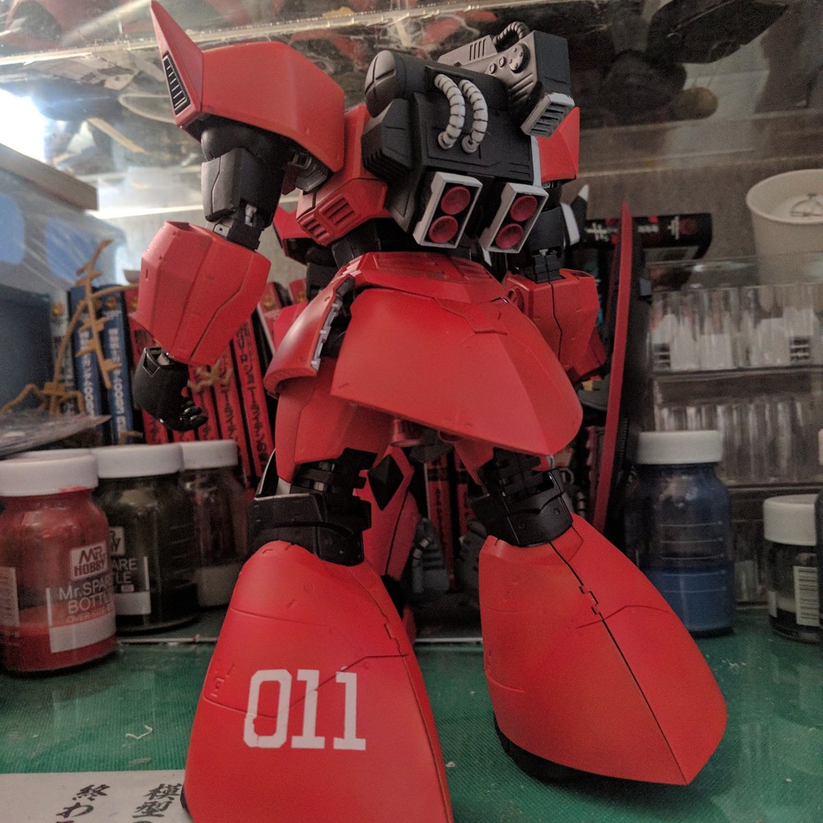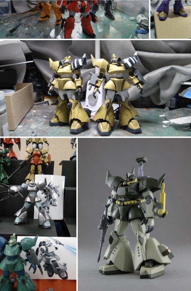 #Twitter模型祭 関東近県の展示会でゲルググを卓に並べてます 細かいディテールとかそんなのは気にしないでパッと見が形になってればいいかなレベルの実力です この一年はゲルググ以外の作成を楽しみました MGでゲルググマリーネ完成させました #年の瀬に渾身の模型晒すのでフォローしてください