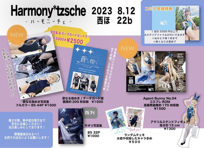 3 4 新作① ブルアカ/コスプレ写真集 【蒼なる煌めき】 アツコ、トキ、サクラコのレオタード衣装をピックアップしました!輝く鼠径部を堪能ください B5フルカラー 44P 1500円 協力カメラマンさん アツコ、トキ▶︎ねこむろさん@dw_nkmr サクラコ▶︎たつゆきさん@tatsuyuki_82 23/08/11 22:17