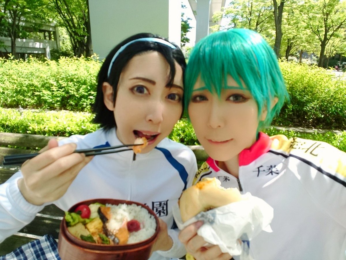 土曜日のペダル遅報ー! お衣装お借りして、カチュたまでお弁当✨ちゃんと"ぽい"お弁当じゃない? 最近の撮影は7月東巻オンリー用だったのですが、これにてクランクアップ!連日 協力してくれたみんな有難う!! めさめさ顔芸頑張った}(ㅍ▽ㅍ)
