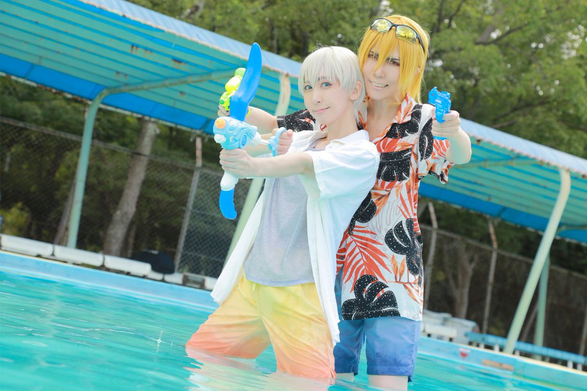【cos/dcst】 さぁて、俺たちに勝てるかな? ┈┈┈┈┈┈┈┈┈┈┈┈ ダッ〇ュストア+αで水遊び龍羽! アロー型の水鉄砲✨ 🐉:@kagetsu88 🏹:@nax2iro 📸:@kiku_o3o