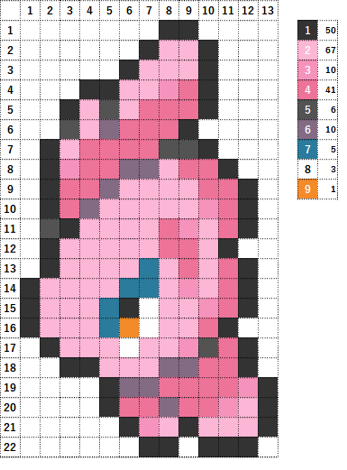 1 35 #ポケモンBW #ママンボウ ピンク色でハート型…ラブカスに似てますよね〜( ˊᵕˋ ;)💦 #ポケモン #pokemon #アイロンビーズ #パーラービーズ #クロスステッチ #ドット絵 #pixelart 21/10/22 07:26
