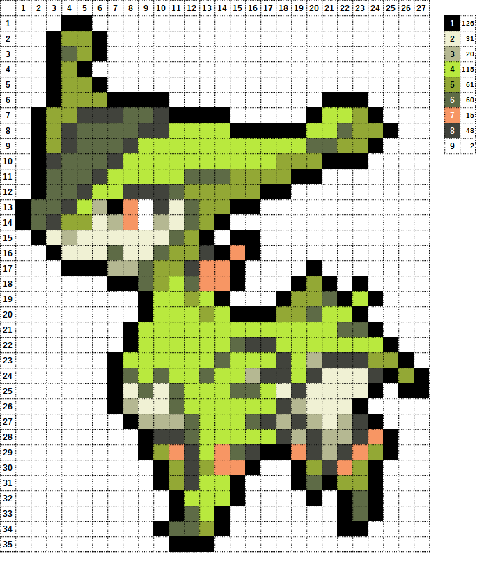 3 34 #ポケモンBW #バルチャイ #バルジーナ "荒っぽい性質だが母性本能も強く、迷子のバルチャイを見つけると巣立つまで面倒を見る。" …良いポケモンだ〜😭 #ポケモン #pokemon #アイロンビーズ #パーラービーズ #クロスステッチ #ドット絵 #pixelart 21/11/01 18:27