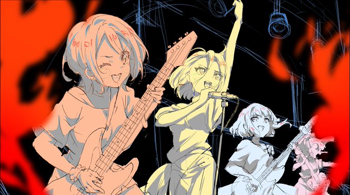 73 251 Let’s 跳んで飛べクラッチ!! #Tokyo7thシスターズ #ナナシス #4U #九条ウメ #鰐淵エモコ #佐伯ヒナ #ギター #ドラム #ベース #富士山 pixiv.net/artworks/10016… 22/08/01 20:25