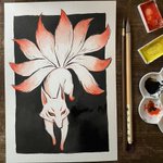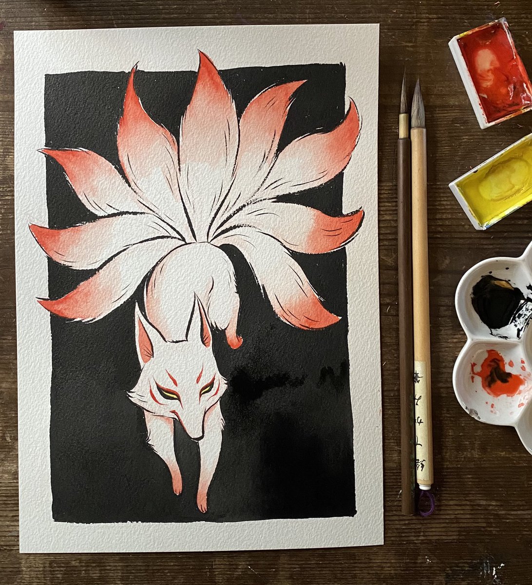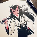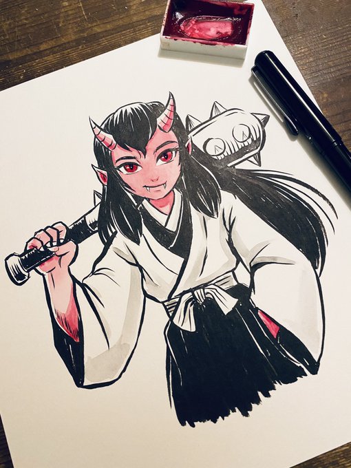 鬼。Decided to finish the piece I started last month. Hope you all are having a great week! . #inktober #inktober2021 #kuretake #kuretakegansaitambi #kuretake_inktober #kuretake_inktober2021 #oni #鬼 #inking #watercolor #kimono #moon