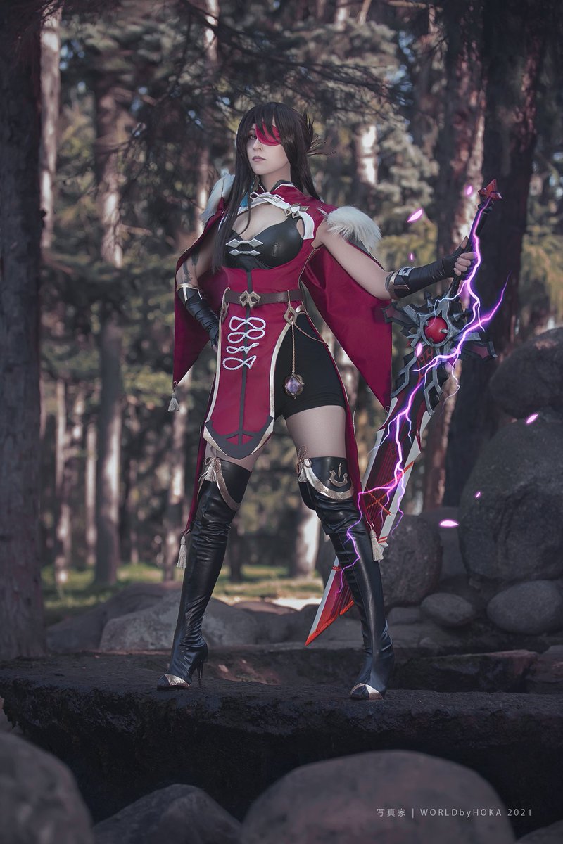 The skies are clear and the sun is bright. Fine weather for a showdown. Photo by @purin_cosplay #cosplay #Genshinlmpact #GenshinImpactcosplay #KujouSara #cosplaygirl #Hoyoverse