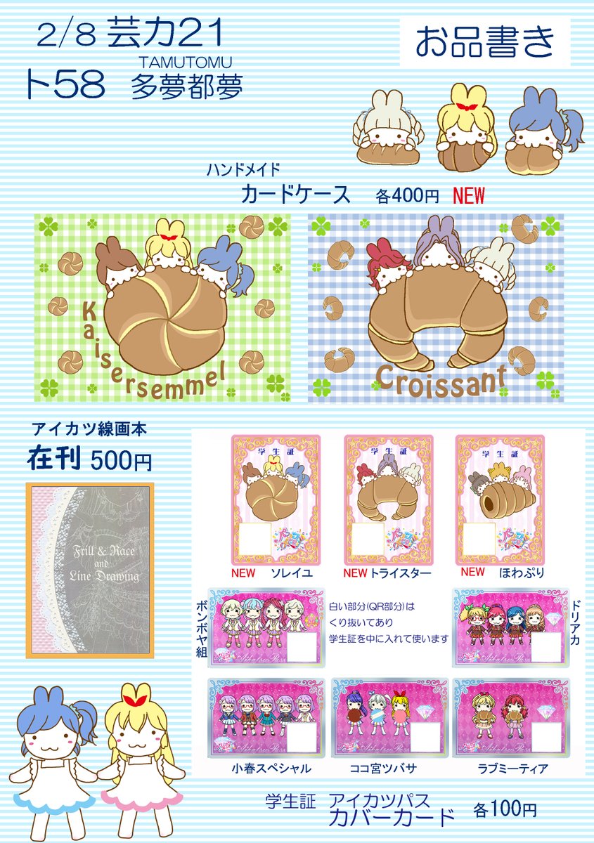 2/8 芸カ21のお品書きです 新作は カードケース、学生証カバーカードです。 追加で何か増えましたら別途告知します。 #芸カ21 #芸カ21お品書き
