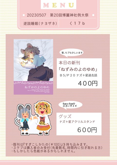 2023年5月7日(日)博麗神社例大祭(東京ビッグサイト)く-17b「逆説睡眠」におります。当日はどうぞよろしくお願いします。 #例大祭 #例大祭20